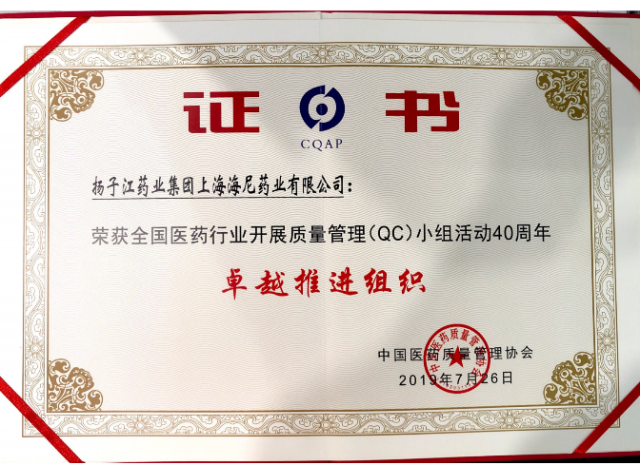 全國醫(yī)藥行業(yè)開展質(zhì)量管理(QC)小組活動(dòng)40周年卓越推進(jìn)組織